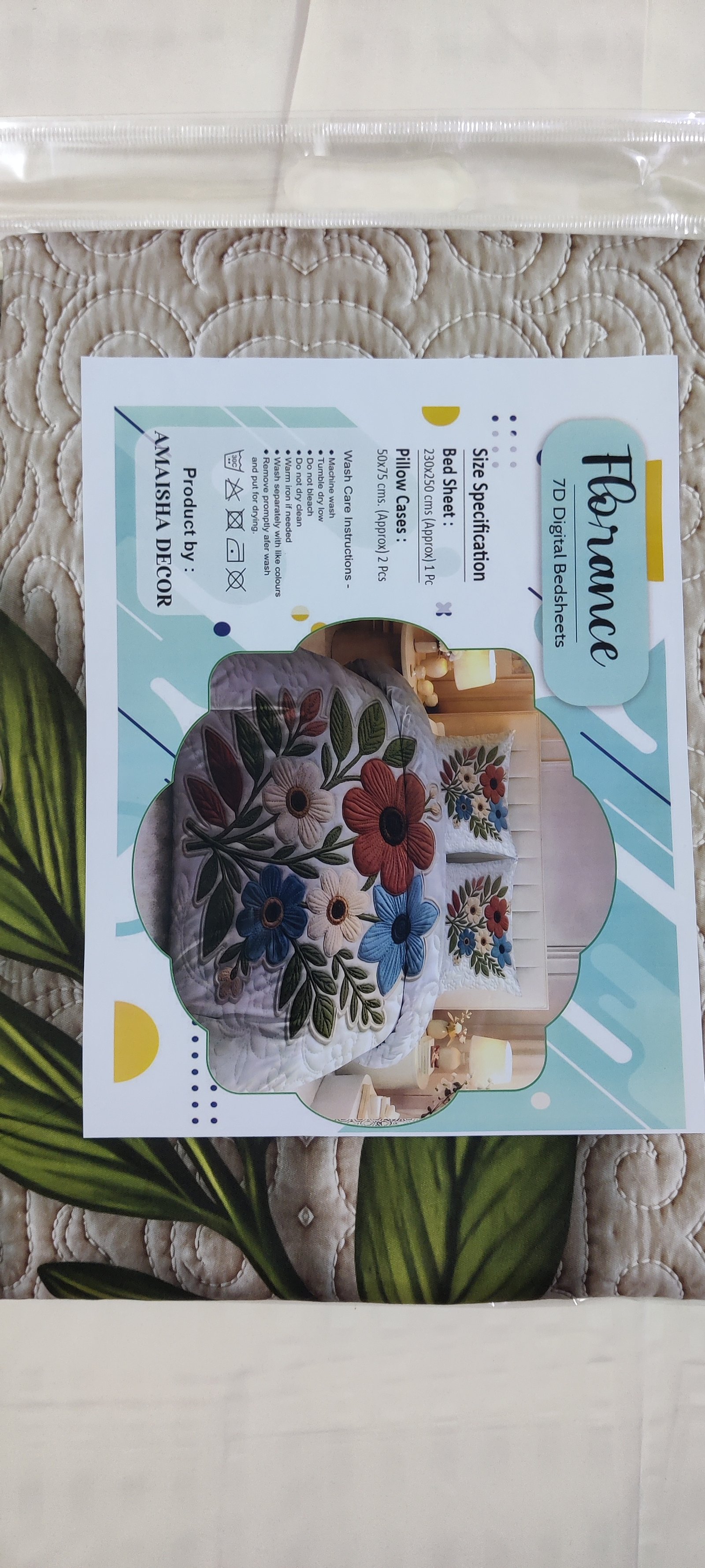 Vibrant 7D Florence Color Flower Bedsheet featuring a beautiful multicolor floral design. Made from soft cotton material, this non-elastic queen size bedsheet (90 x 100 inch) adds freshness, elegance, and a lively touch to your bedroom décor.
