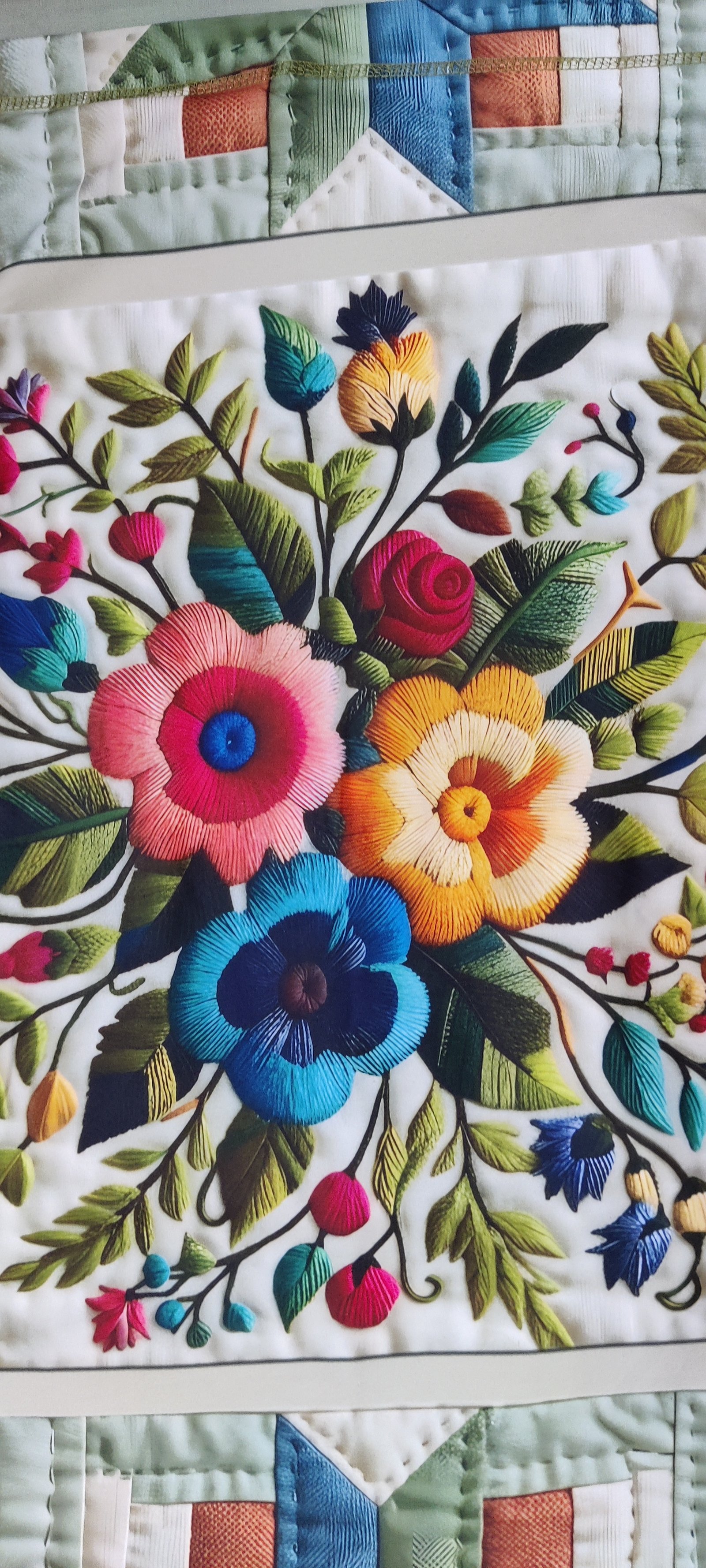 Artistic border design with a quilt-style layout enhances the overall aesthetic appeal.