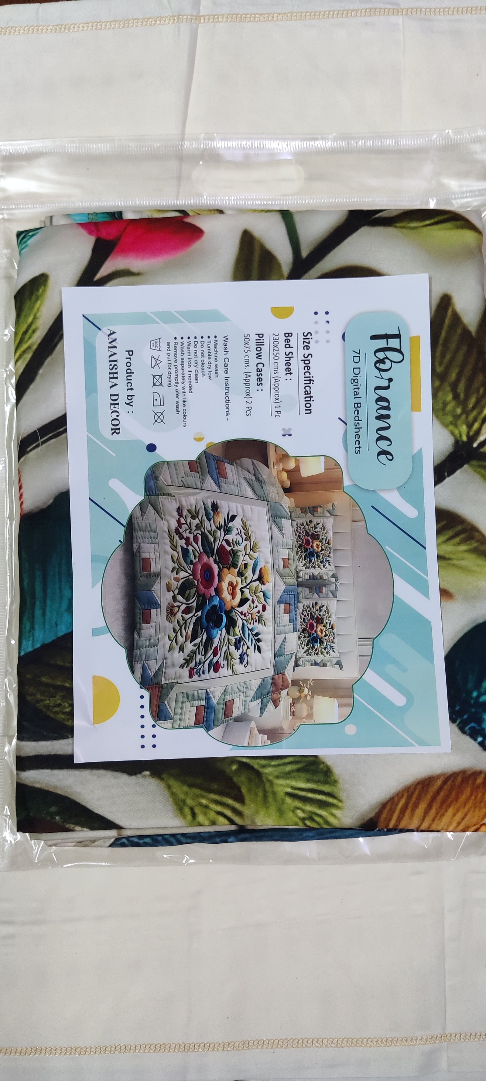 Elegant 7D Florence Thread Flower Bedsheet featuring a beautiful embroidery-style floral design. Made from soft cotton material, this non-elastic queen size bedsheet (90 x 100 inch) adds a rich, handcrafted and stylish touch to your bedroom