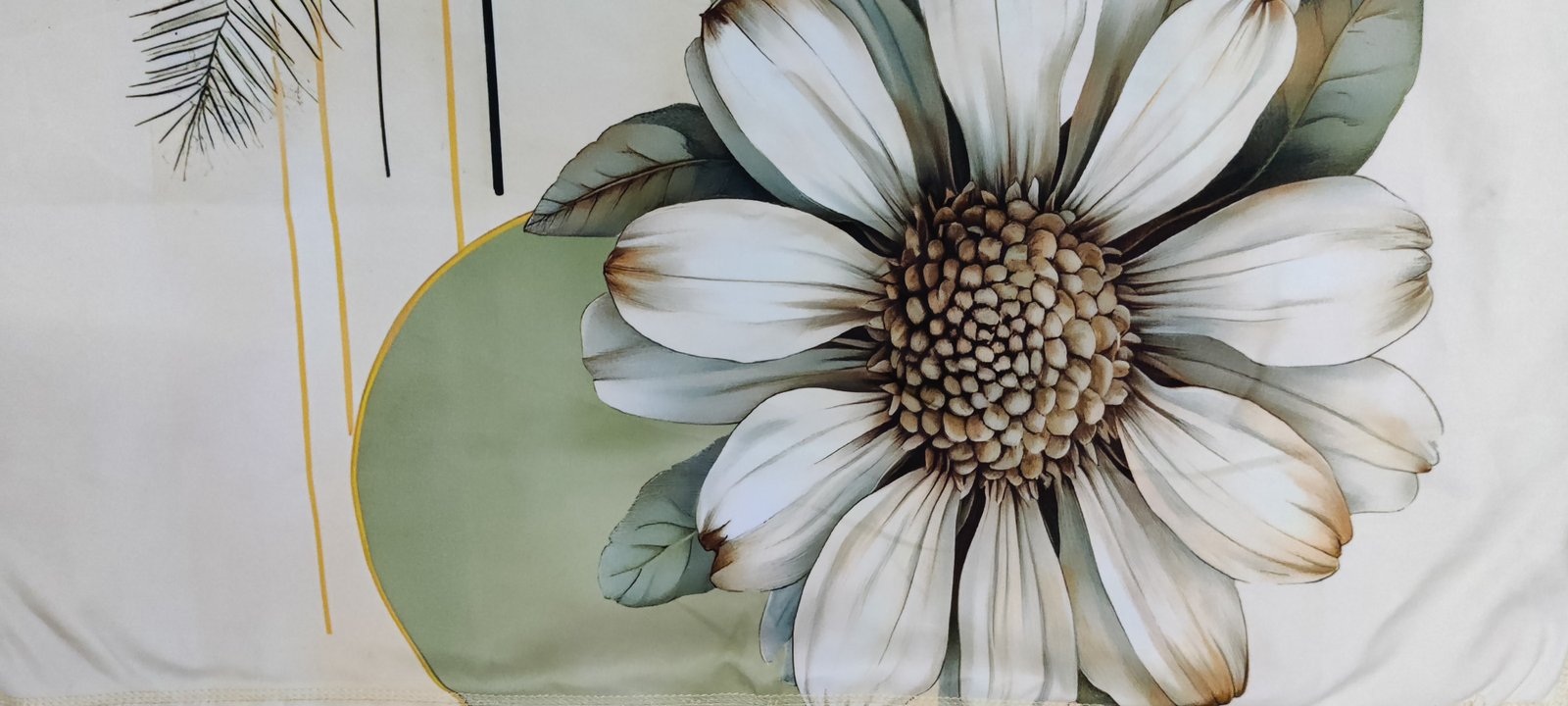 Beautiful white sunflower-inspired floral pattern with a 7D digital effect creates a soft and premium look.