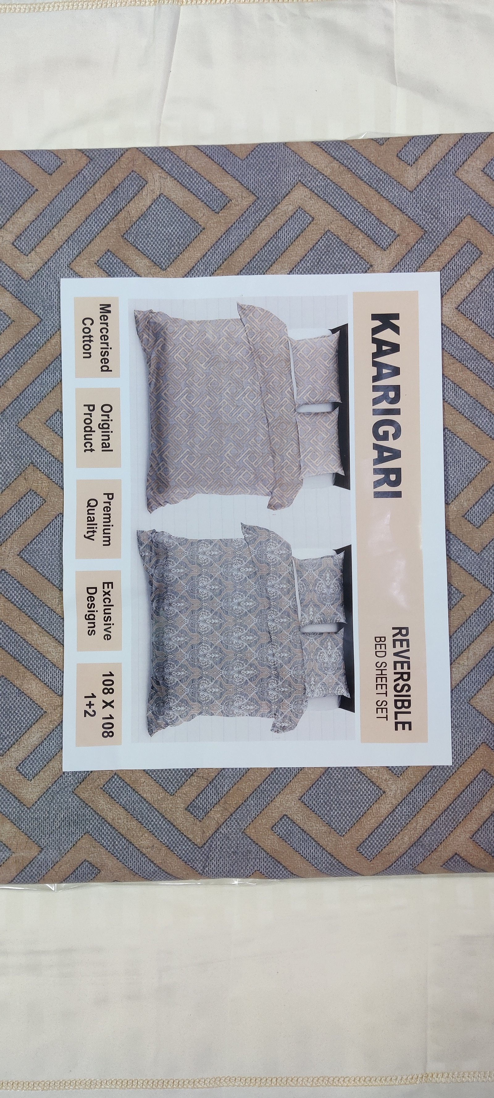 Premium reversible king-size bedsheet made from 100% mercerised cotton, featuring elegant geometric and floral patterns for a modern and luxurious bedroom look. Soft, breathable, and perfect for everyday comfort.
