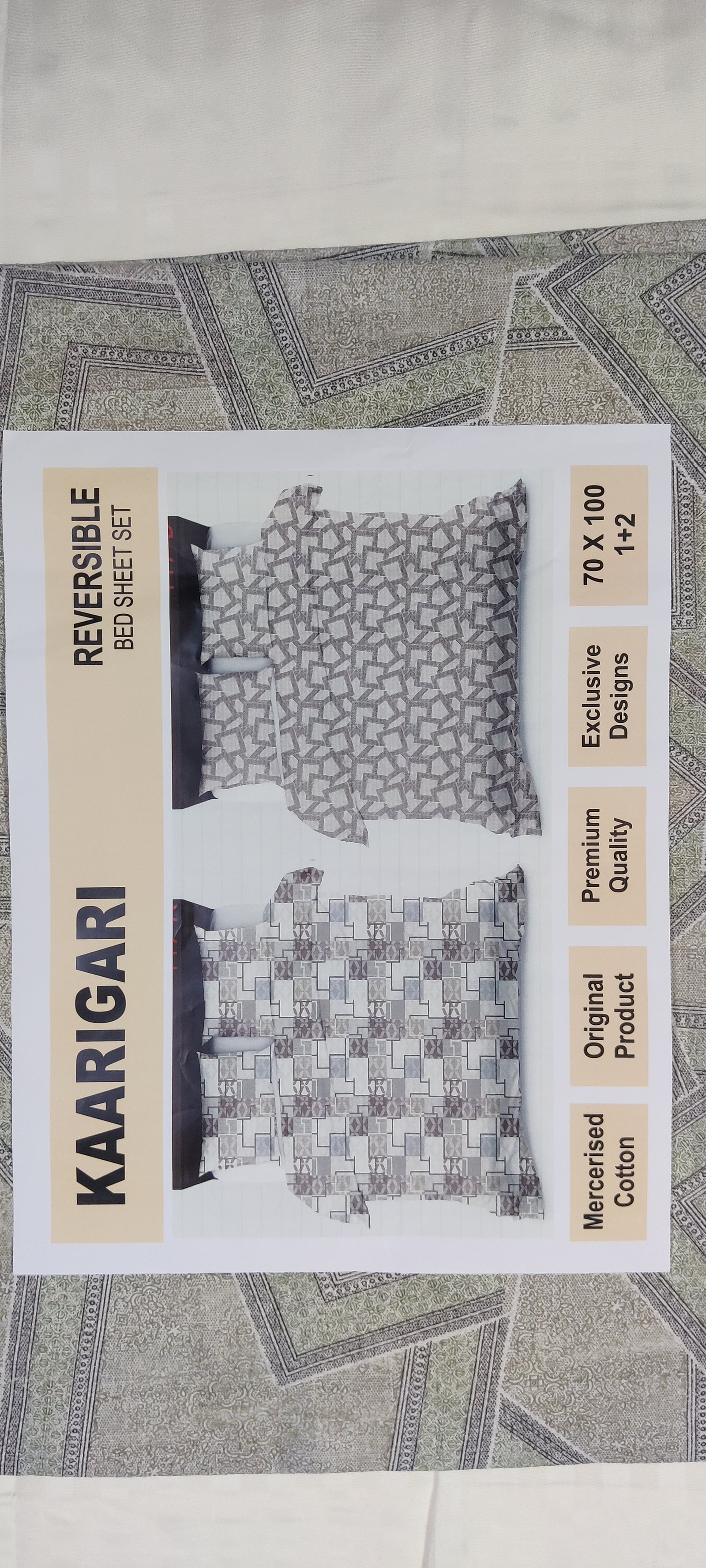 - 🛏️ Product Name: Reversible Single Bed Green Geo Box Bedsheet