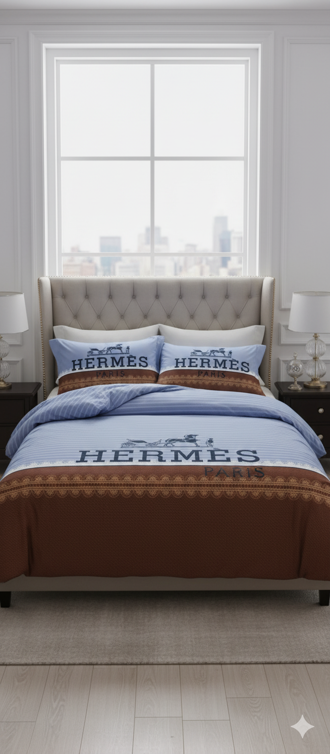Hermes Style Queen Size Printed Bedsheet Set