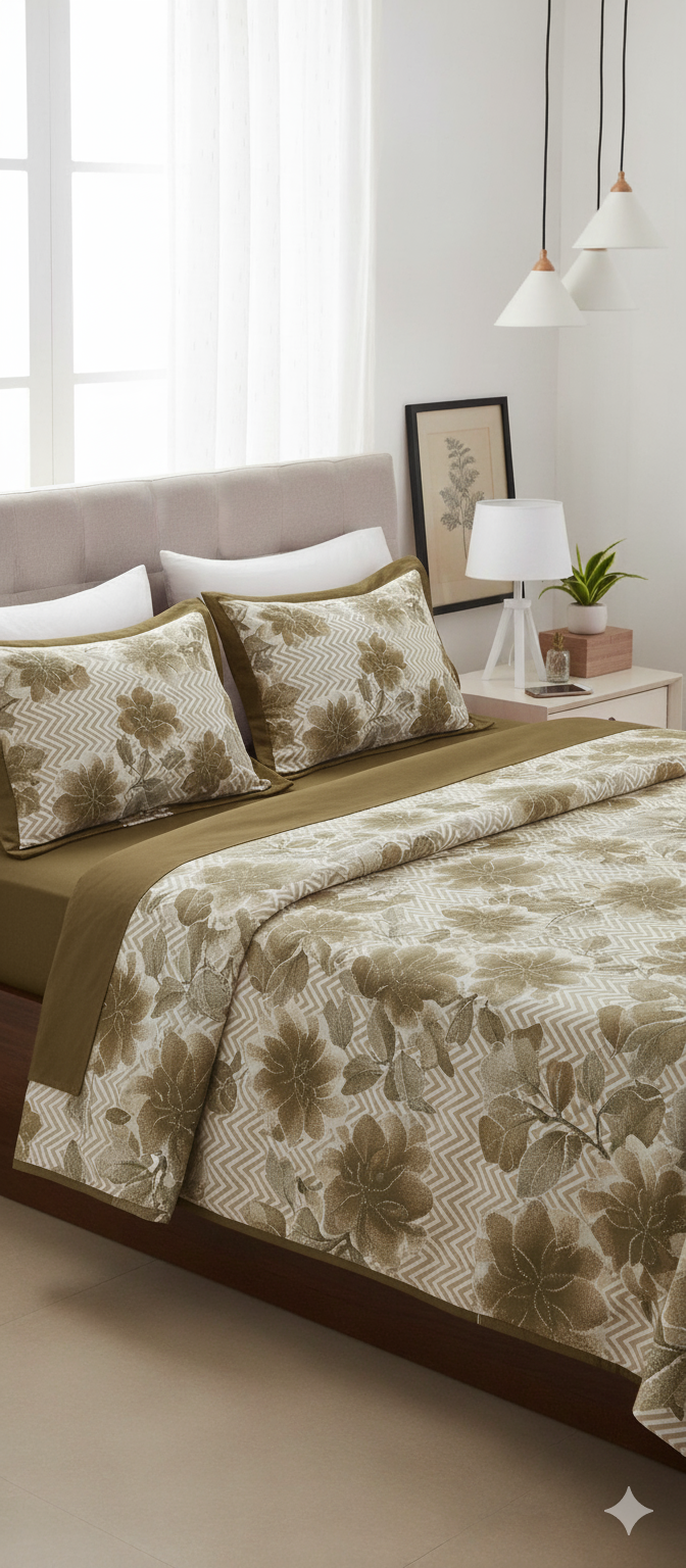 Beautiful floral motifs combined with a trendy zigzag background that adds depth, style, and a premium look to your bedroom. - Soft & Breathable Cotton Fabric