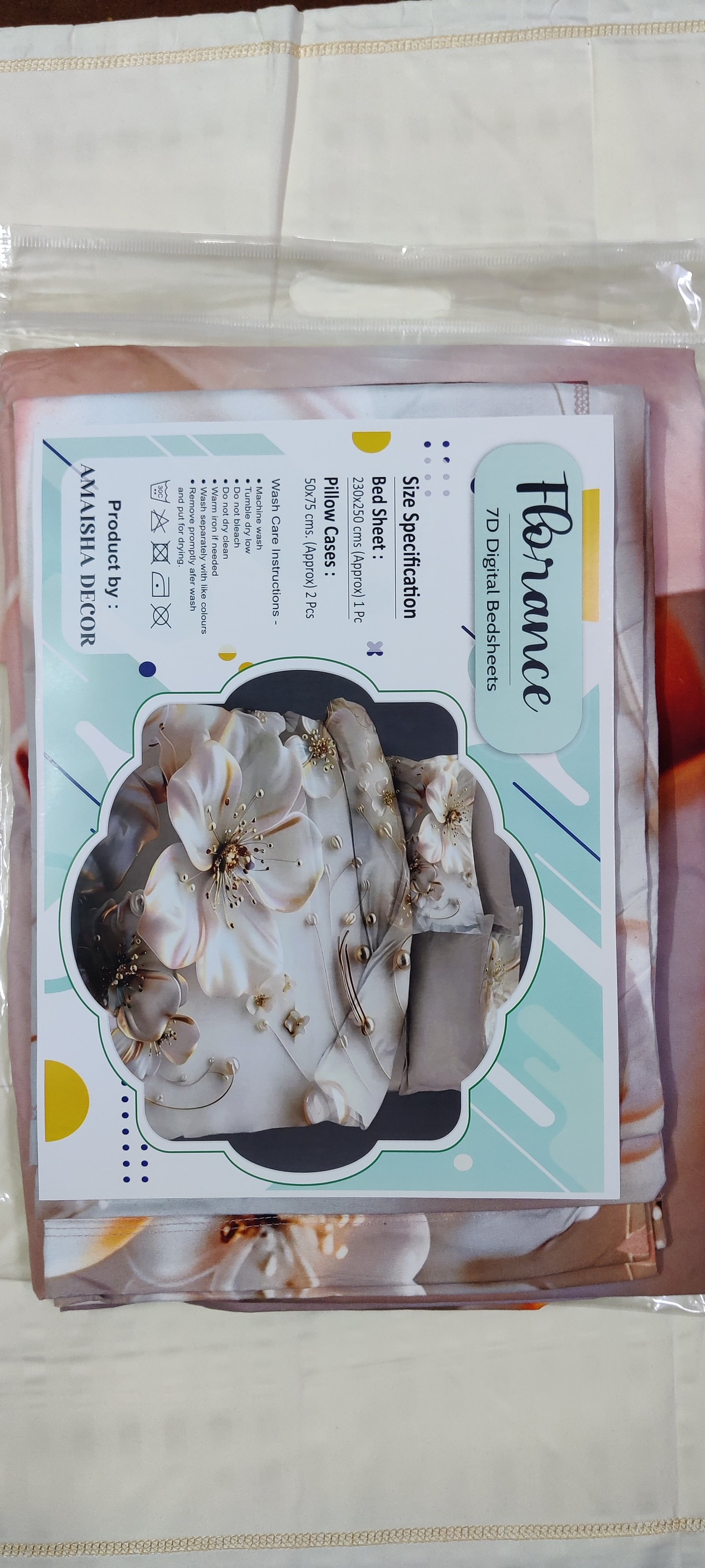 Luxurious 7D Florence Gold Beige Bloom Bedsheet featuring a soft floral design in elegant gold and beige tones. Made from premium cotton material, this non-elastic queen size bedsheet (90 x 100 inch) adds a classy and sophisticated touch to your bedroom.