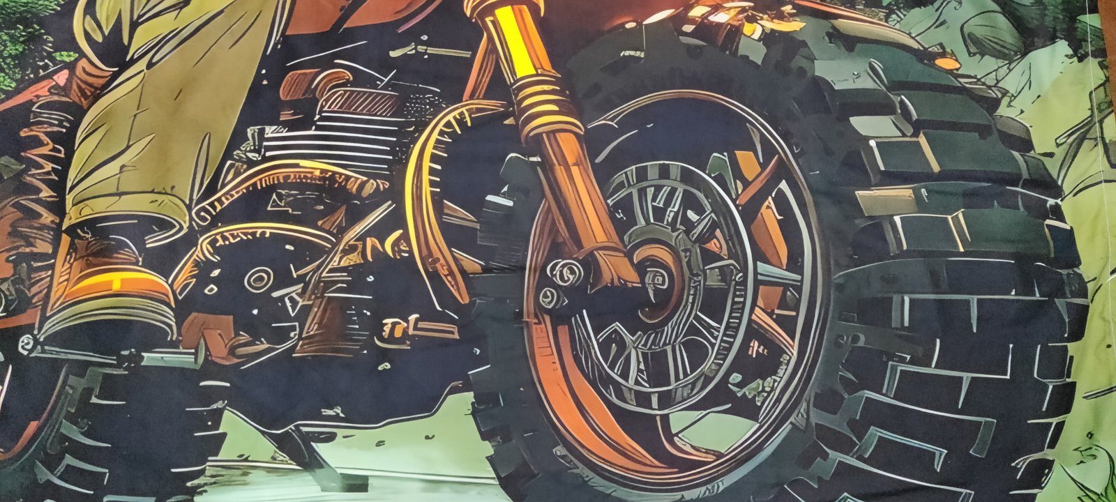 Eye-catching bike and adventure scene with a 7D digital effect creates a bold and energetic look. - 🌄 Adventure-Themed Artwork