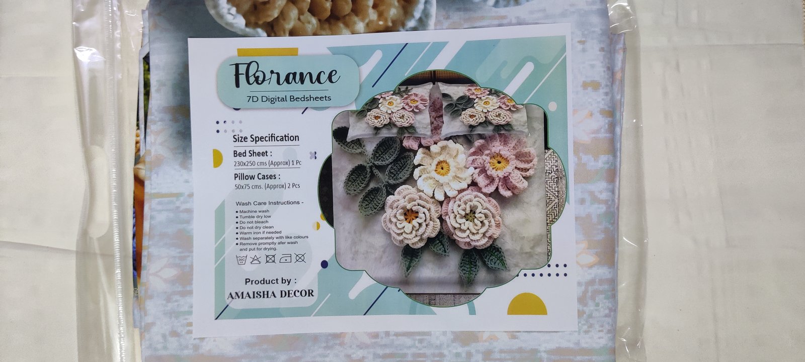 Beautiful 7D Florence Pastel Flower Bedsheet featuring soft pastel floral patterns with a delicate handcrafted look. Made from premium cotton material, this non-elastic queen size bedsheet (90 x 100 inch) adds a calm, cozy, and elegant touch to your bedroom.