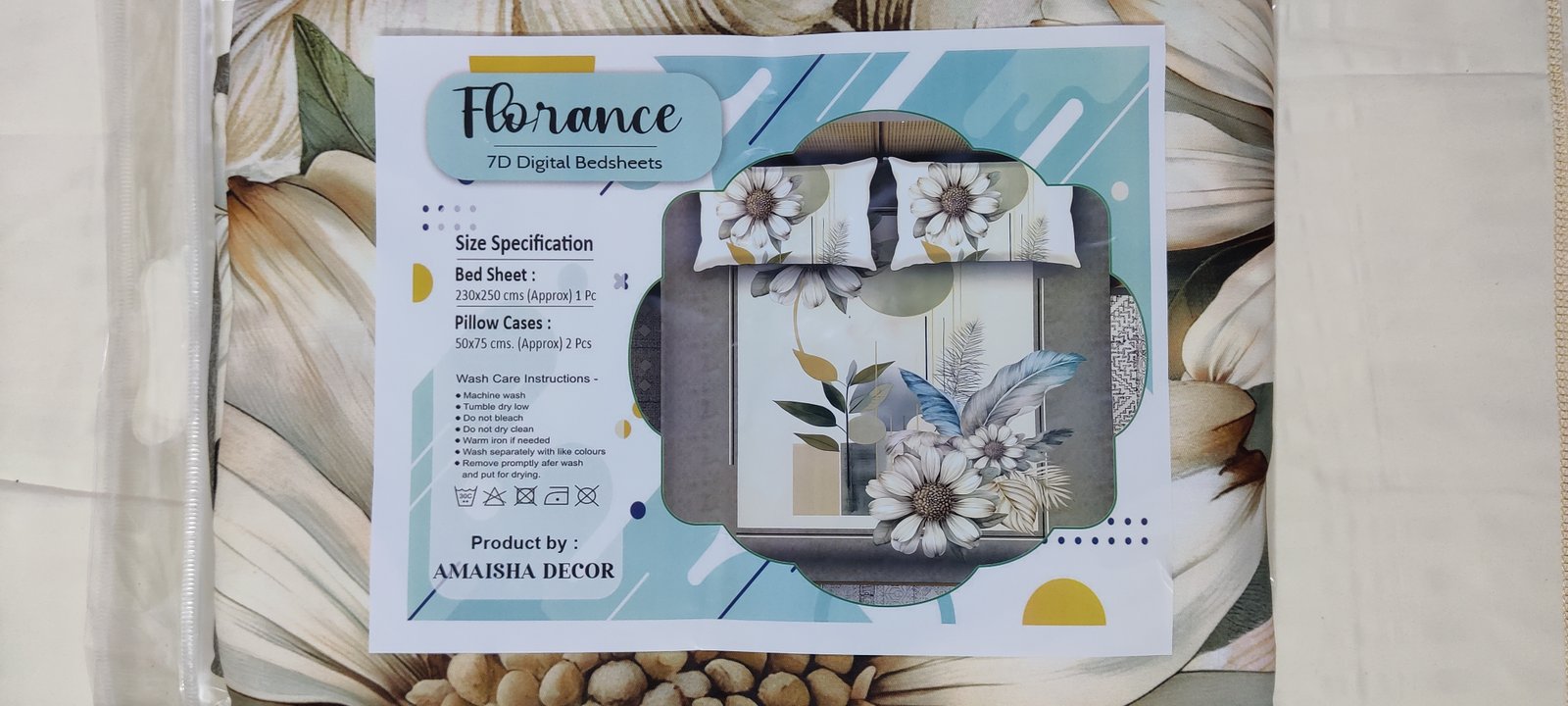 Graceful 7D Florence White Sunflower Bedsheet featuring a soft floral design with sunflower-inspired patterns. Made from premium cotton material, this non-elastic queen size bedsheet (90 x 100 inch) adds a fresh, calm, and elegant touch to your bedroom.