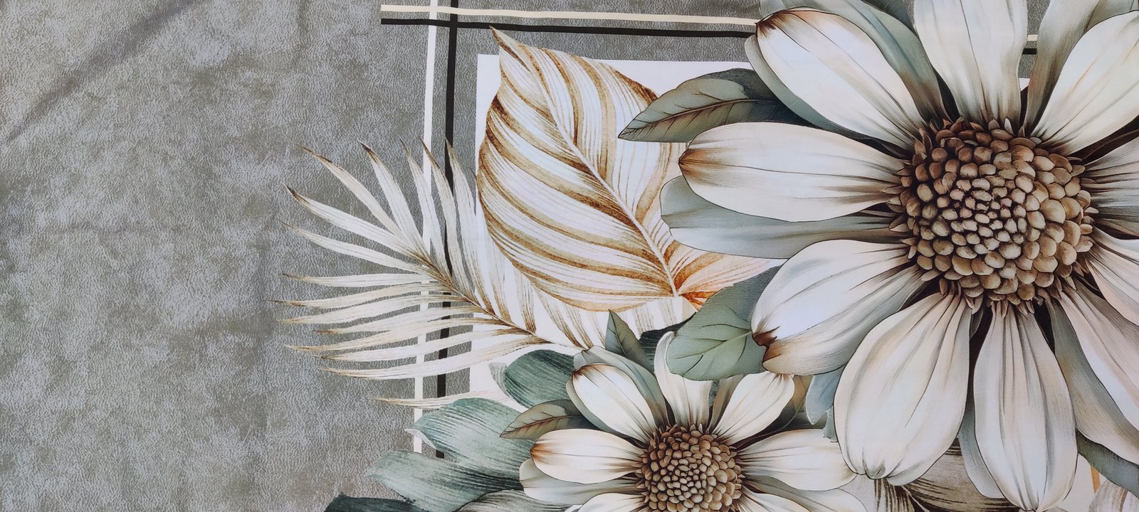 Beautiful white sunflower-inspired floral pattern with a 7D digital effect creates a soft and premium look.