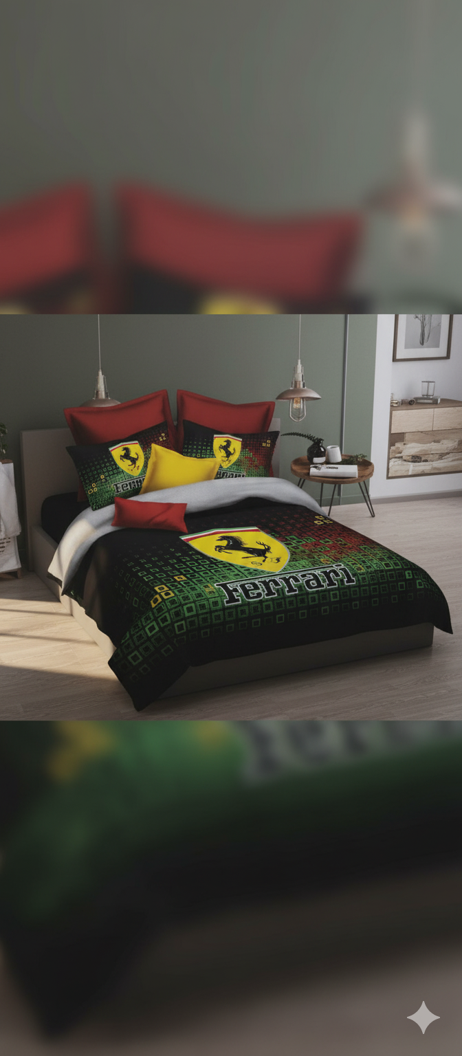Ferrari Style Queen Size Printed Bedsheet Set (Non-Elastic)